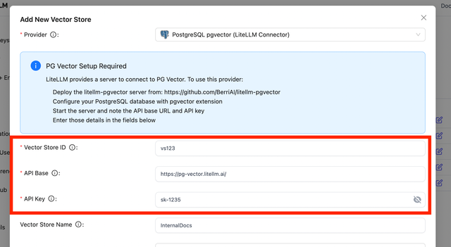 endpoints for PG Vector. The LiteLLM Proxy server connects to your deployed service and uses it as a vector store when querying.